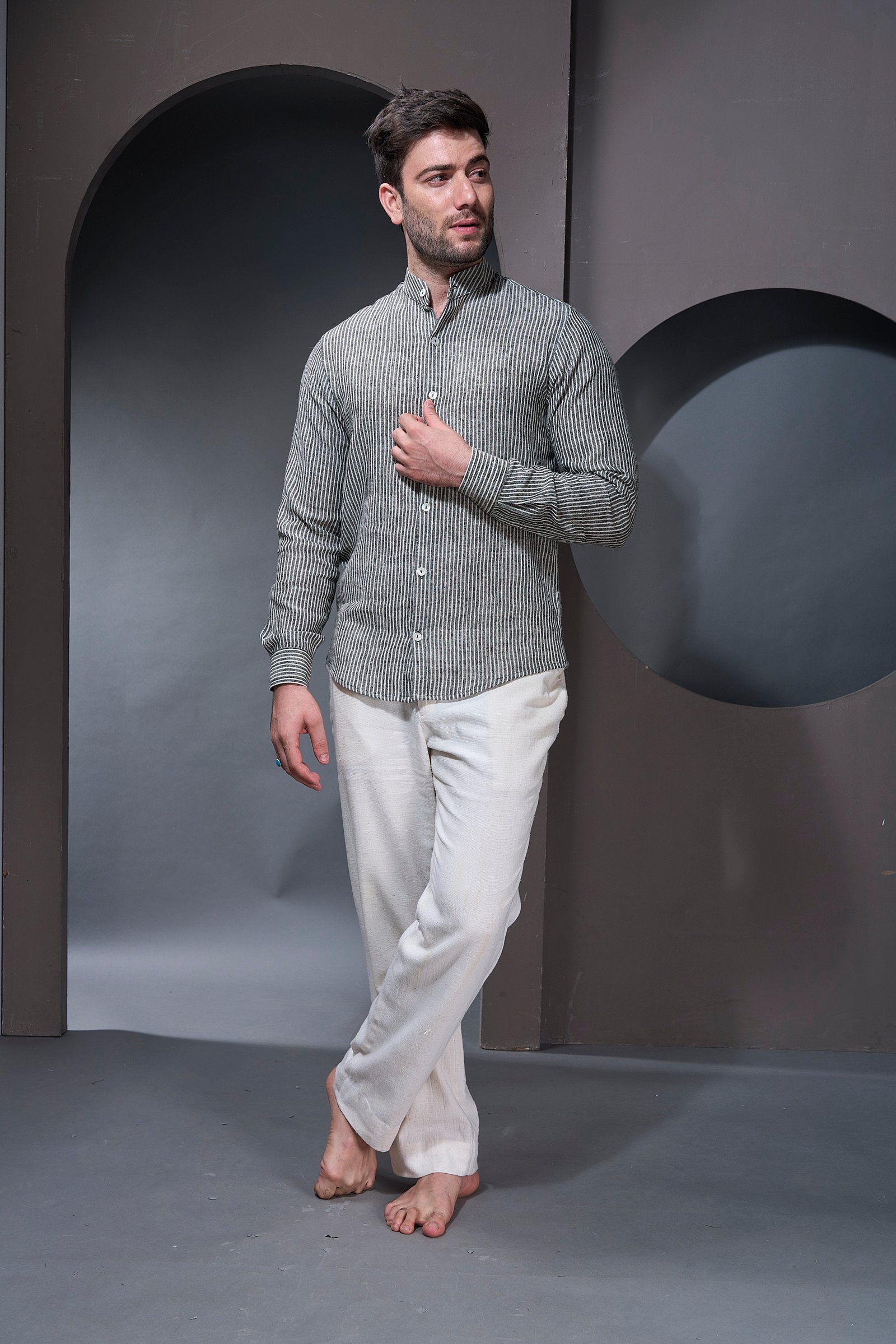 Work days, weekend outings, slow travel, creative sessions, or calm evening plans—The Classic Stripes Shirt adapts with ease, offering comfort, breathability, and a polished natural charm wherever you go.